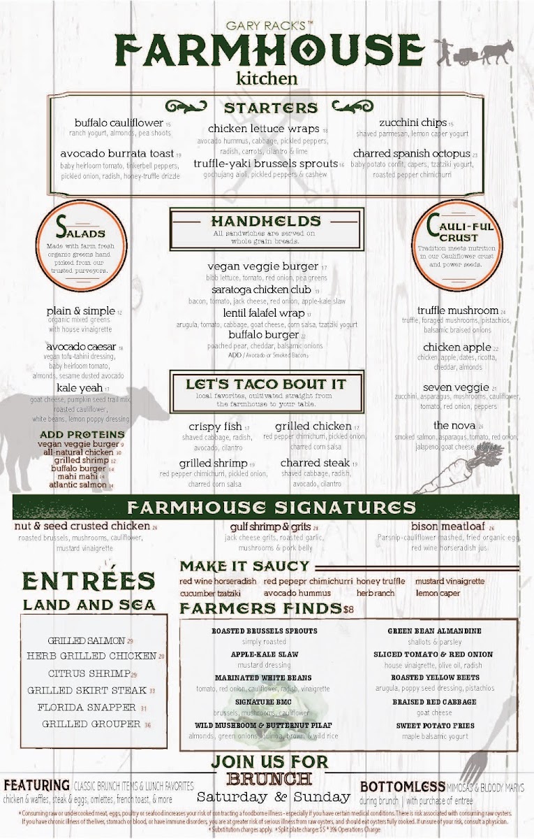 Gary Rack's Farmhouse Kitchen - Delray Beach Menu